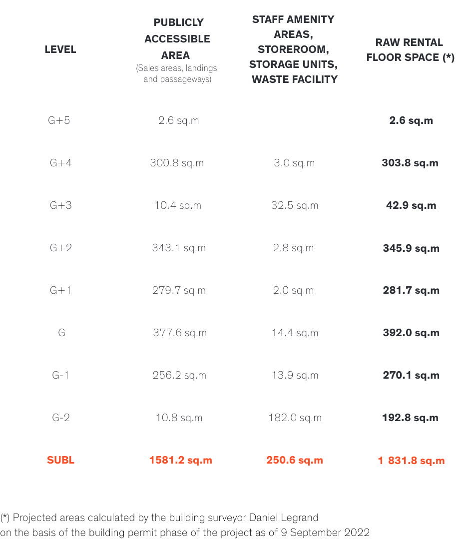 (*) Projected areas calculated by the building surveyor Daniel Legrand